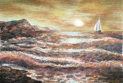 “Теплий ранок на морі”, 2007р., папір, олійна пастель, 21×30 см.